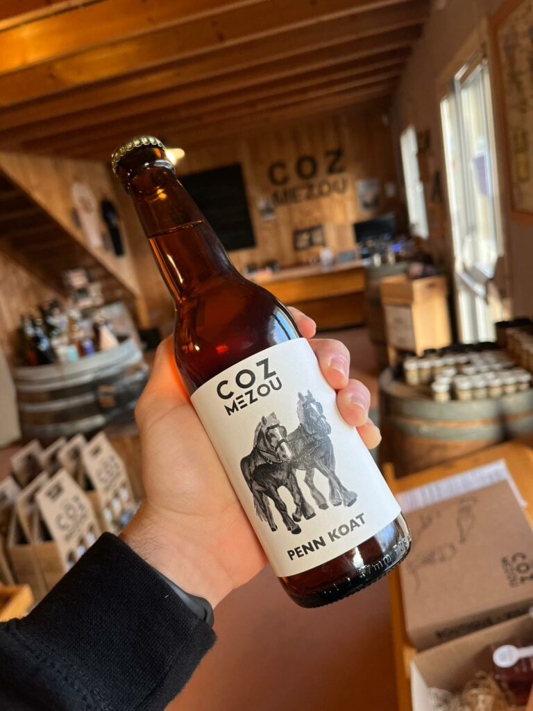 Penn Koat veut dire tête de bois en breton, on utilise ce terme pour qualifier quelqu’un de têtu ou d’obstiné. L’expression caractérise bien le cheval de trait breton qui figure sur son étiquette.